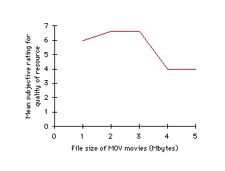 In spite of much of the hype that surrounds the World Wide Web, there is still a considerable amount of user dissatisfaction. For example, Robert Kraut's HomeNet project has produced large amounts of high quality, longitudinal data on Internet usage for families in the Pittsburgh area. This data has shown a considerable decrease in Internet usage after an initially high level of activity [6]. A growing number of empirical studies can be used to explain these observations. For example, my previous work has established a clear connection between user dissatisfaction and the increasing retrieval delays that affect popular sites [3,4,5]. For example, Figure 1 shows how subjective ratings for the quality of video clips vary with file size. Clips below two megabytes are criticised for being too short. Clips larger than three megabytes produce negative reactions as retrieval delays increase. Ramsay, Barbesi and Preece have replicated these results [10]. Other authors have used this data to directly informing interface development. Nielson's forthcoming book uses the data in Figure 1 to develop guidelines for the provision of remote, video resources [9].