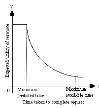 Opportunity costs represent a second form of tariff that users must meet when interacting with distributed, information retrieval systems. These can be thought of as the time that users must sacrifice in order to retrieve remote resources. It might also be thought of as the cost that any delay incurred for the success of the user's task as a whole. This view is a simple extension of March and Simon's empirical work into satisficing [7]. Their experimental approach involved users literally sacrificing some quantity of one good or service in order to gain another. In the World Wide Web, users are trading time for information. Figure 3 illustrates this point. Initially, users have some anticipated or predicted minimum for the amount of time that it will take to complete any transfer. Up to this point, the value of any information retrieved will be relatively high. Documents received before the minimum predicted period can be seen as a bonus from the user's perspective. Eventually, as delays increase the perceived value of the resource will rapidly decline. At some point there will be no time left for the user to complete their task. After this moment, the information will be of almost no value.