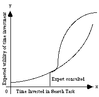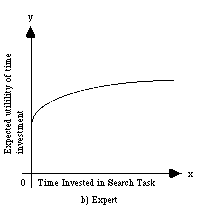 In contrast, Figure 5 b) represents an expert's attitude to the returns from any search. Relatively low investments in terms of the expert's time will quickly yield large rewards. Expertise is characterised not only by knowledge itself but by the ability to quickly find and filter new sources of data [11]. Eventually, however, there comes a point at which any additional time will only produce limited returns; if the expert can't find it then it's probably not there.