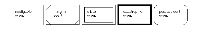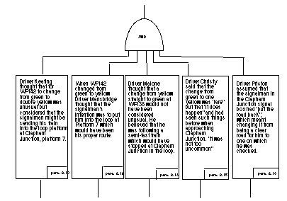 Figure 12 illustrates the application of this extension. The failure of the signalling system was a catastrophic event. The failure of the five preceding drivers to report the irregularity of the signals was a marginal 'error'. Such reports could not have prevented the accident if it had happened to the first train.