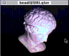 In contrast to VRML, QuicktimeVR offers interface designers with the means of rapidly generating three dimensional resources without the costs of model building. Rather than painstakingly transforming and translating primitive objects, this approach works by shooting a large number of photographs. A viewer is then used to 'stitch' the images together so that users can pan around or zoom into a 3D scene. The photographs are taken using a motorised tripod and a digital camera so that large buildings and complex objects can be recorded in a relatively short period of time. This offers strong commercial advantages over the VRML approach which requires considerable time and skill in order to construct relatively simple worlds. Figure 2 shows an excerpt from a QuicktimeVR tour of the Macintosh House in Glasgow. As with VRML, the visualisation facilities supported by QuicktimeVR have recently been extended to support more complex forms of interaction through the introduction of embedded links to other resources.